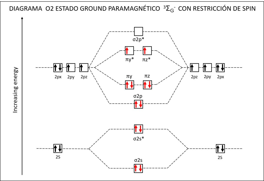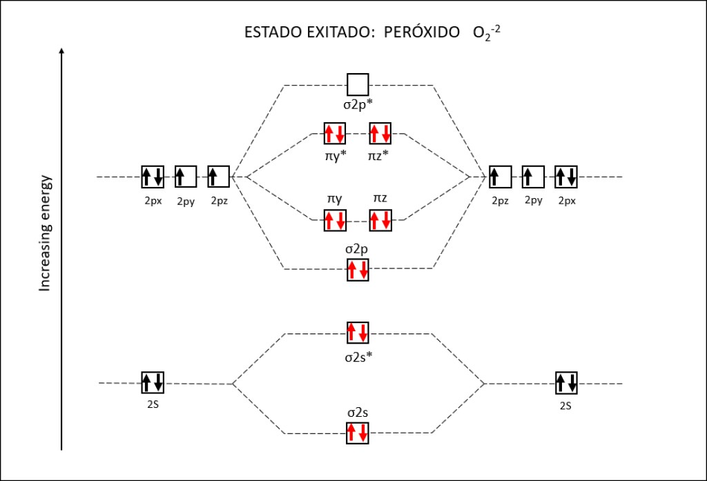 Figura 2 : Orbitales moleculares correspondientes al estado ground y a los estados exitados superóxido y peróxido de la molécula de oxígeno.