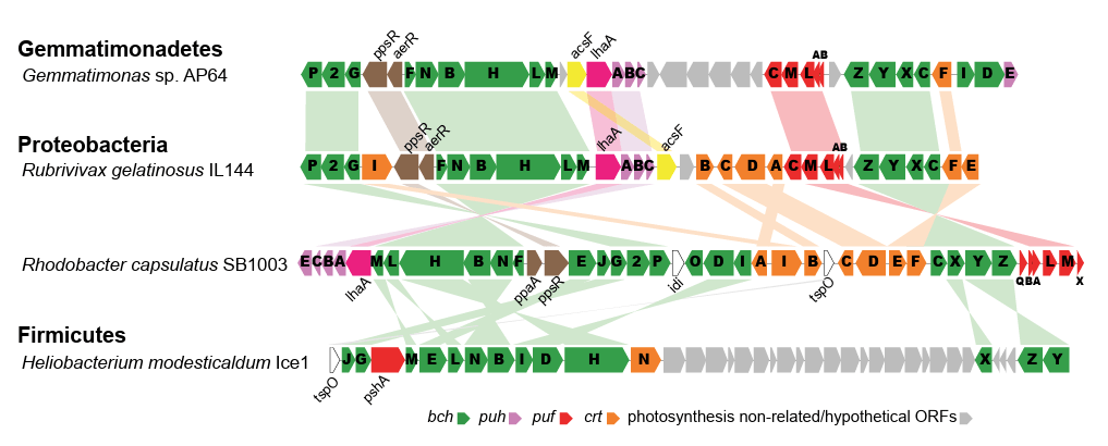 [5]Sattley WM, Madigan MT, Swingley WD, Cheung PC, Clocksin KM, Conrad AL Dejesa LC, Honchak BM, Jung DO, Karbach LE, Kurdoglu A, Lahiri S, Mastrian SD, Page LE, Taylor HL, Wang ZT, Raymond J, Chen M, Blankenship RE, Touchman JW 2008. The Genome of Heliobacterium modesticaldum, a Phototrophic Representative of the Firmicutes Containing the Simplest Photosynthetic Apparatus. J Bacteriol 190:. https://doi.org/10.1128/jb.00299-08