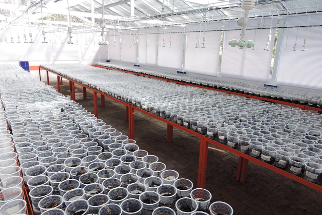 Capacidad : Espacio para 4,500 plantulas en materas de 10 cmt de diámetro, ampliable a 13,500 plantulas en triple piso.