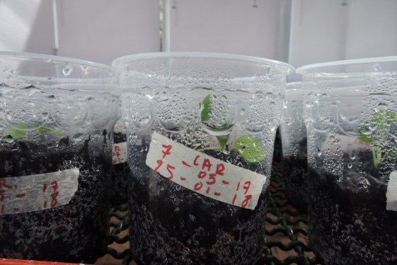 Fig 2. Plántulas de Anthurium caramantae en recipientes plásticos
