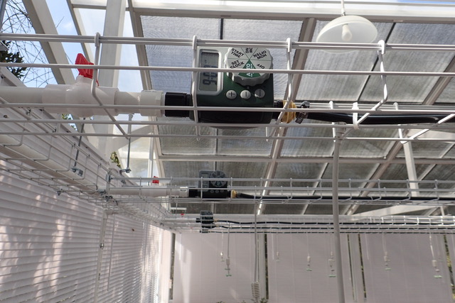 Fig 4. Controladores de riego, instalados sobre el sistema de bandejas