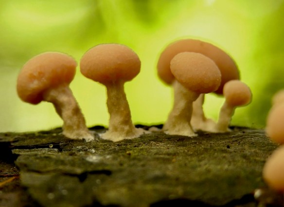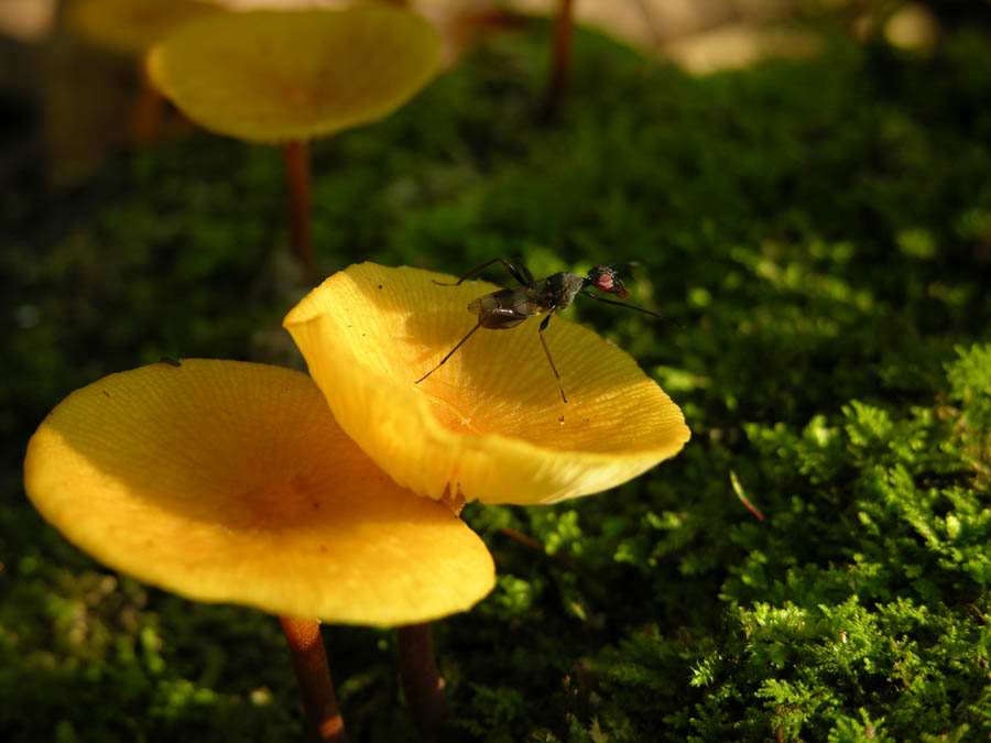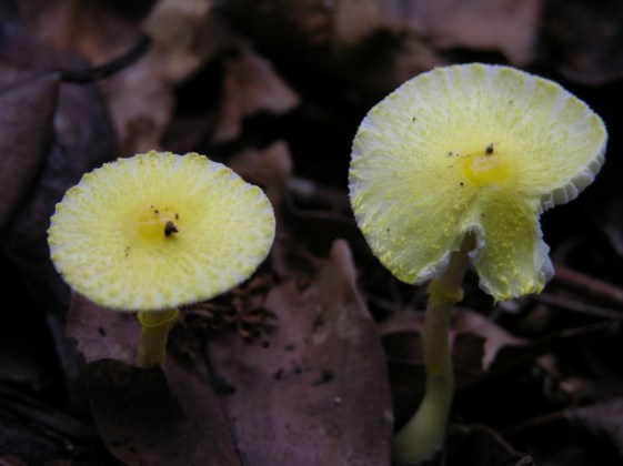 Creciendo bajo el Robledal, la mayoría de individuos en colonias compactas de diez o mas setas por grupo, emergiendo al abrigo de un camino de piedras, este pequeño Ascomiceto de escasos 3 cmt de longitud, de llamativo sombrero verde y pie amarillo fibroso, conocido en ingles como “Chicken lips”, se reporta por primera vez en la reserva, en plena temporada de lluvias (Mediados de Noviembre 2018).