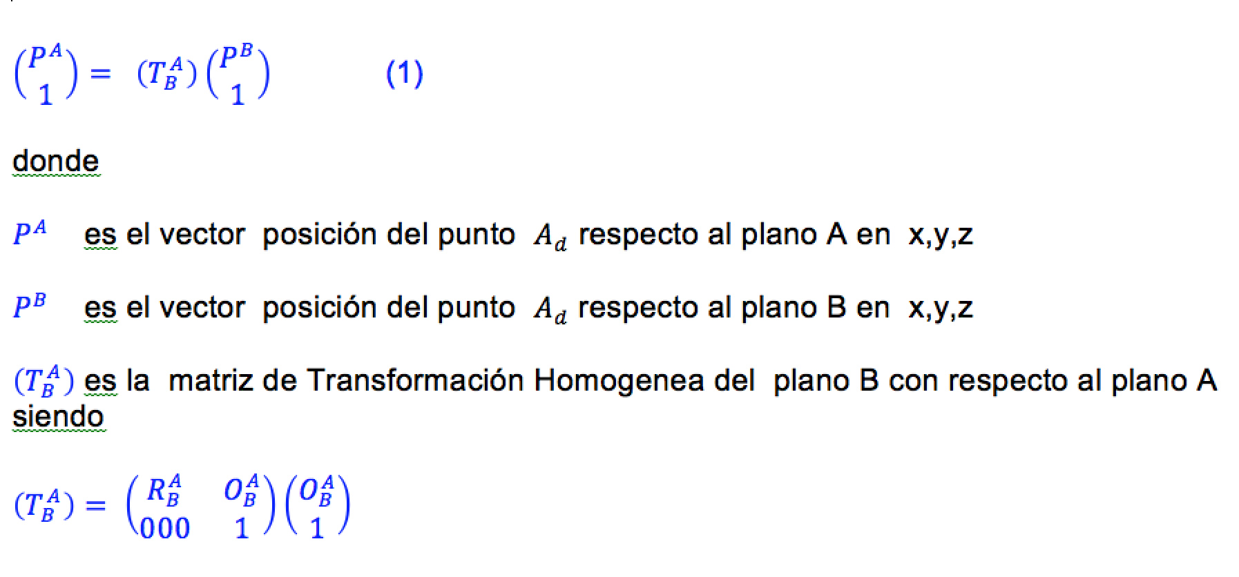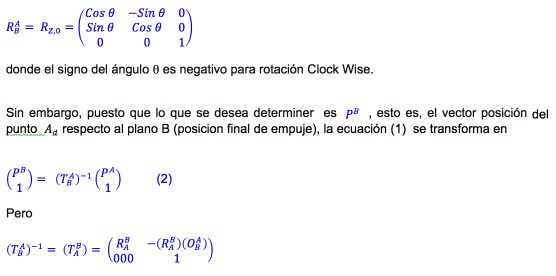 MATRICES DE TRASFORMACION HOMOGENEA APLICADAS A DEFINICION DE PUNTO FINAL DE EMPUJE