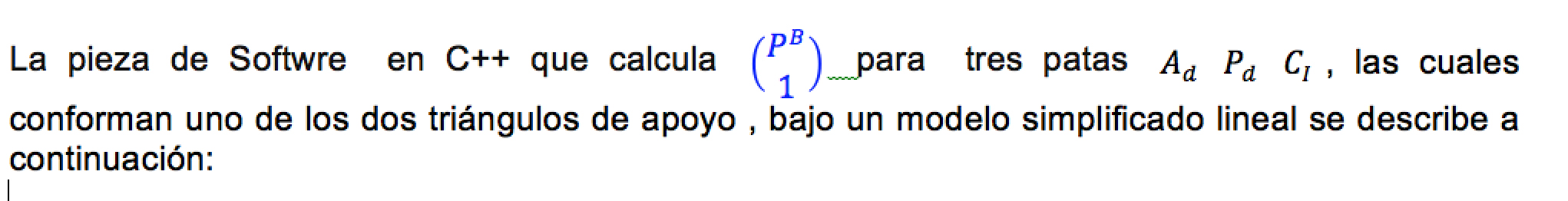 Los puntos 4 y 5 se han resaltado en negrilla pues son los dos puntos que involucran modelaJe matemático. A continuación se discute el modelo que define los recorridos de las patas, basado en Matrices de Transformación Homogénea.